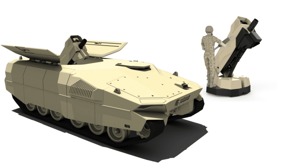 As a module for self-propelled mortar carriers, the ALKAR’s recoil mechanism reduces the force endured by the platform when shooting. This enables prospective end-users to fit the ALKAR to a diverse range of vehicles, including potentially lighter wheeled vehicles.