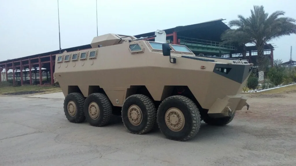 Blitzkrieg Defense Solutions, a privately owned Pakistani defence vendor (formerly known as Cavalier), will be showcasing its internally designed 8×8 wheeled armoured fighting vehicle (AFV) – the Hamza Multi-Role Combat Vehicle (MCV – at the 2016 International Defence Exhibition and Seminar (IDEAS).