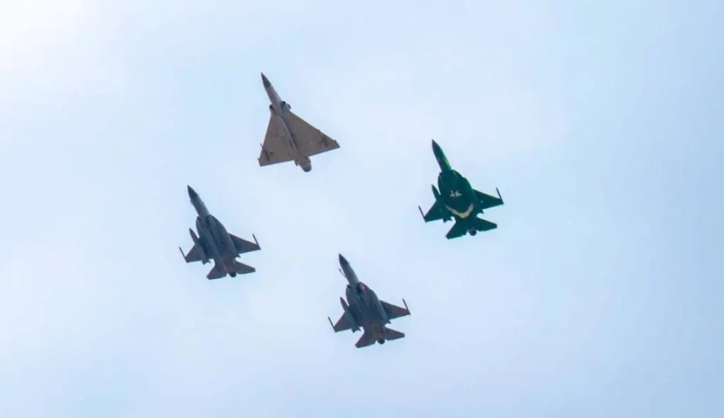 The spectators fervently cheered to see the pride of Pakistan JF 17 aircraft appearing on the horizon.