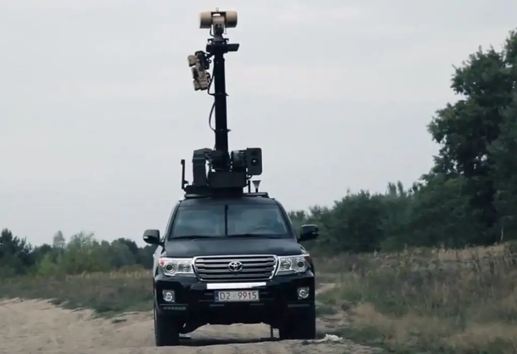 The unit is equipped with radar and Electro-Optical System (EOS), thermal vision camera, stabilization and remote weapon system (RWS). It includes a high power lightweight radar and Electro-Optical System (EOS) – the Blighter Revolutions 360 – to provide 360° scan without any dead zones. The radar features a 20° wide elevation beam which offers excellent coverage across all types of terrain, including complex rocky and mountainous regions. The system is able to detect a single walking person at distances of up to 7.4 km and a moving vehicle at 16 km.