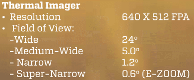 Next, we will assume that the locally manufactured Zumr-1(EP) is the primary imaging payload on the Shahpar-II. Fortunately, specifications for this system can be found online. Of interest to us are the specifications of the thermal imager: